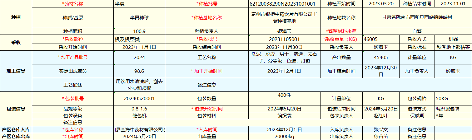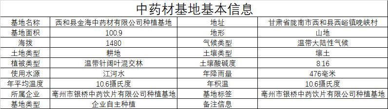 >> 半夏中藥材種植基地溯源信息